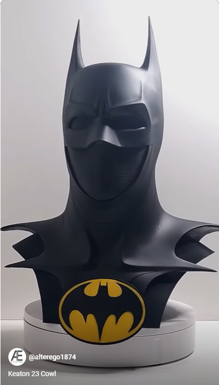 Based on the recent movie from 2023 this Keaton 23 Cowl is a beautiful replica made from urethane rubber Constructed from high-quality urethane rubber, this Keaton 23 Cowl is a must-have for fans looking to add an authentic touch to their collection.