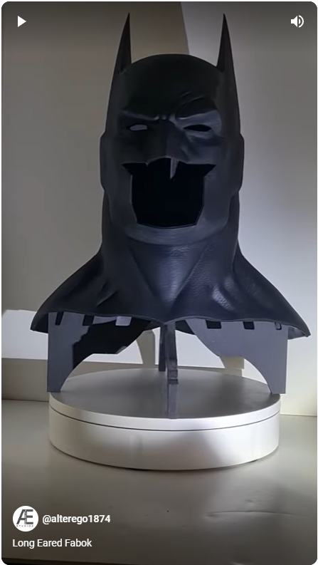 This is the long eared version of the Fabok Cowl Based on the artwork by Jason Fabok this cowl made from urethane rubber with a focus on quality and authenticity, this cowl is a faithful representation of Jason Fabok's iconic designs. Customers can expect a durable and high-quality product that accurately captures the essence of Jason Fabok's artistic vision.